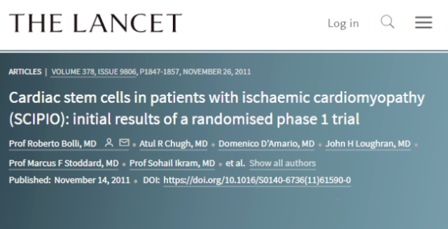 2011年11月,國際醫學(xué)期刊《柳葉刀》報道了世界第一例接受干細胞治療心臟病的臨床試驗。65歲的邁克·瓊斯(Mike Jones)患有充血性心力衰竭(congestive heart failure),2009年7月,瓊斯成為世界上第一位接受干細胞移植療法的心力衰竭病人。