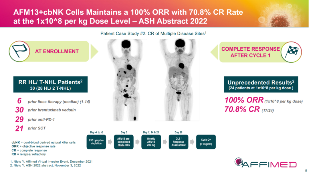 此前,海外公司Affimed公布了一項1/2期臨床試驗的積極數據,這一研究中接受NK細胞聯(lián)合治療的患者達到了100%的客觀(guān)緩解率!
