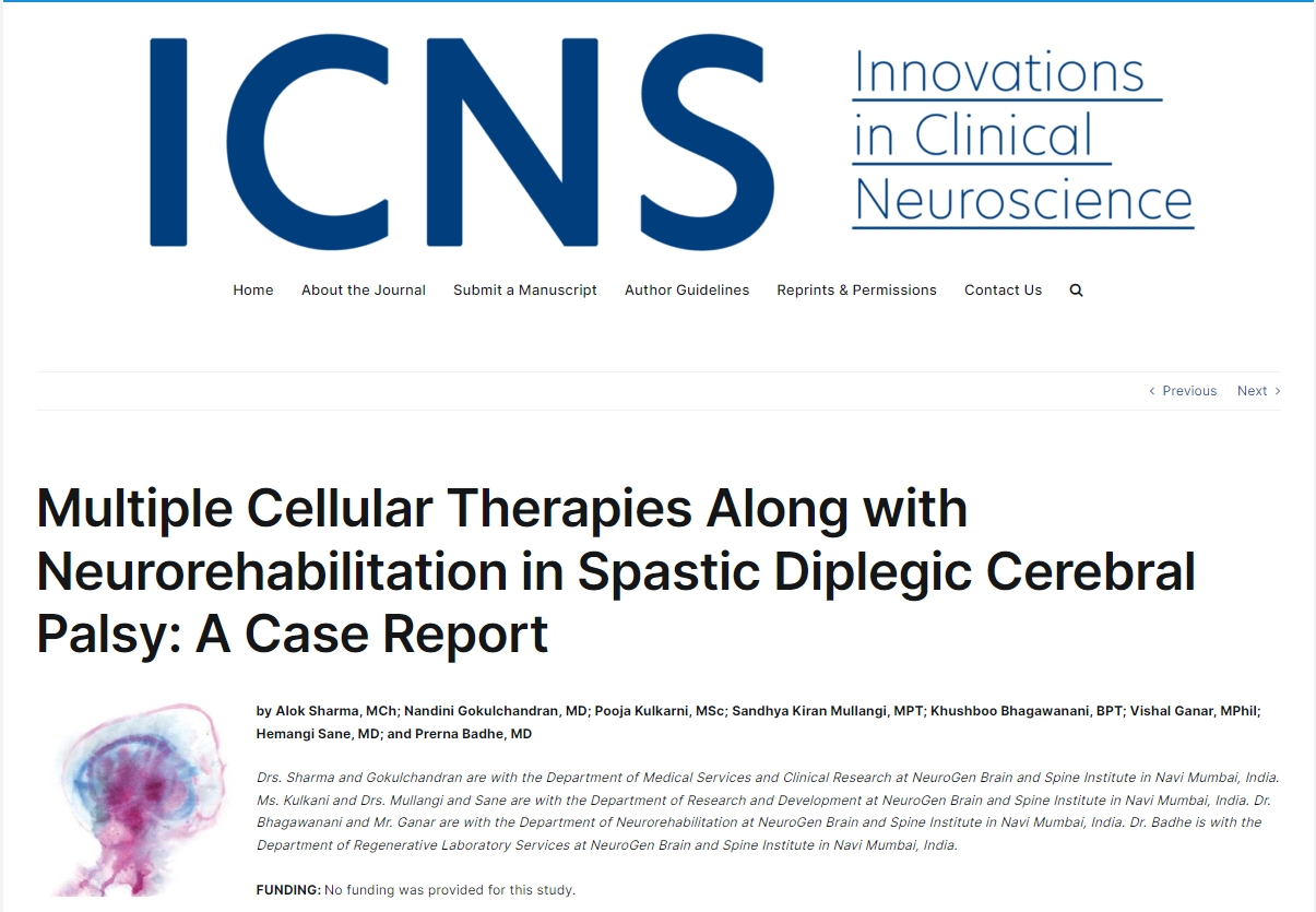 《創(chuàng )新臨床神經(jīng)科學(xué)》雜志中一篇文章報道,多種細胞療法以及神經(jīng)康復可能是促進(jìn)腦癱康復的一種安全、可行的新選擇。