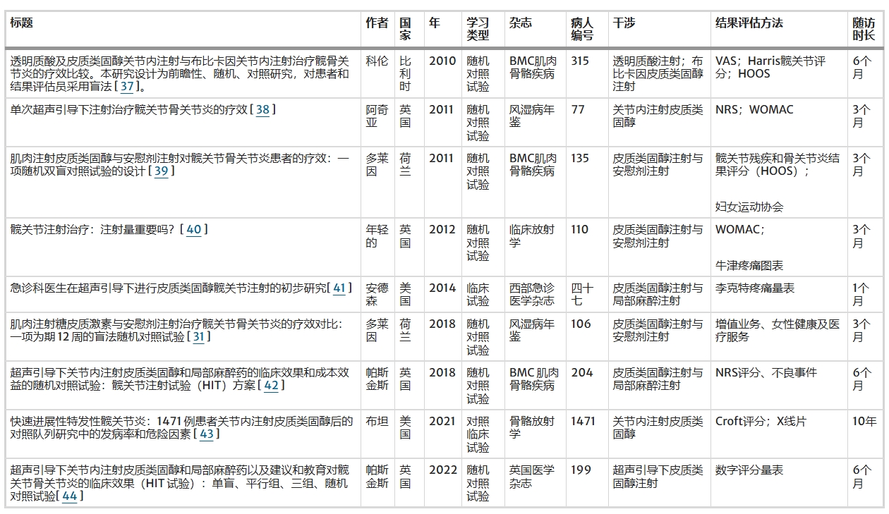 ?先前的研究已經(jīng)證實(shí),關(guān)節內注射 CS 可有效緩解 OA 早期患者的臨床癥狀(表1)。