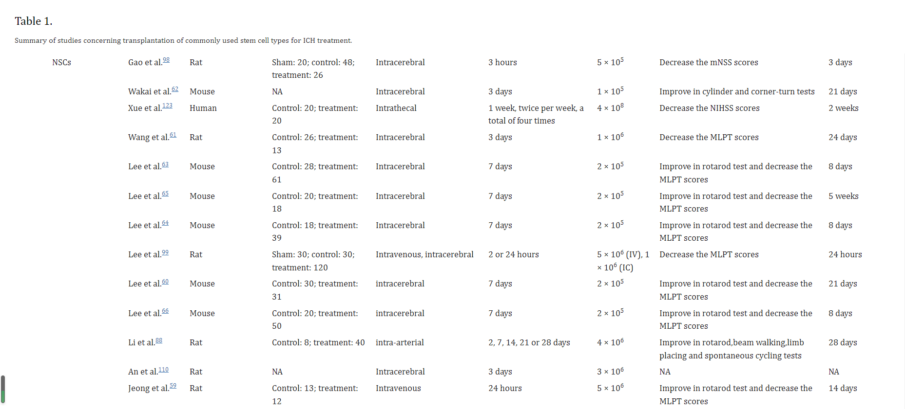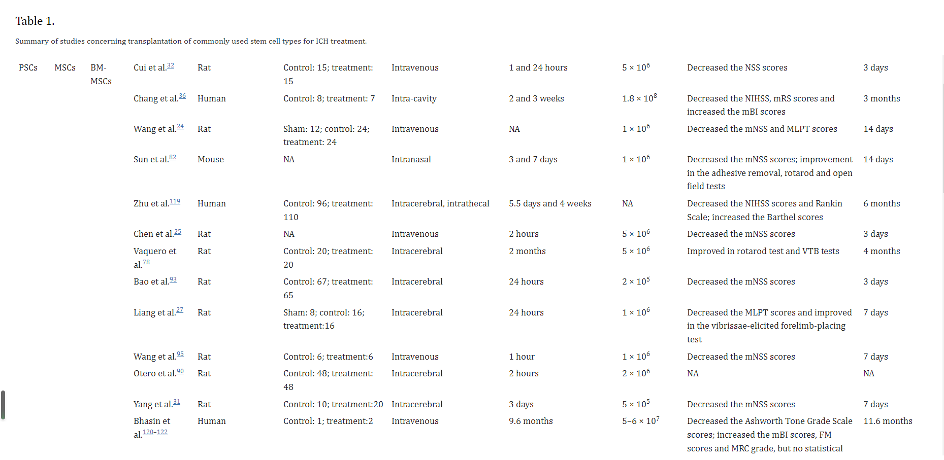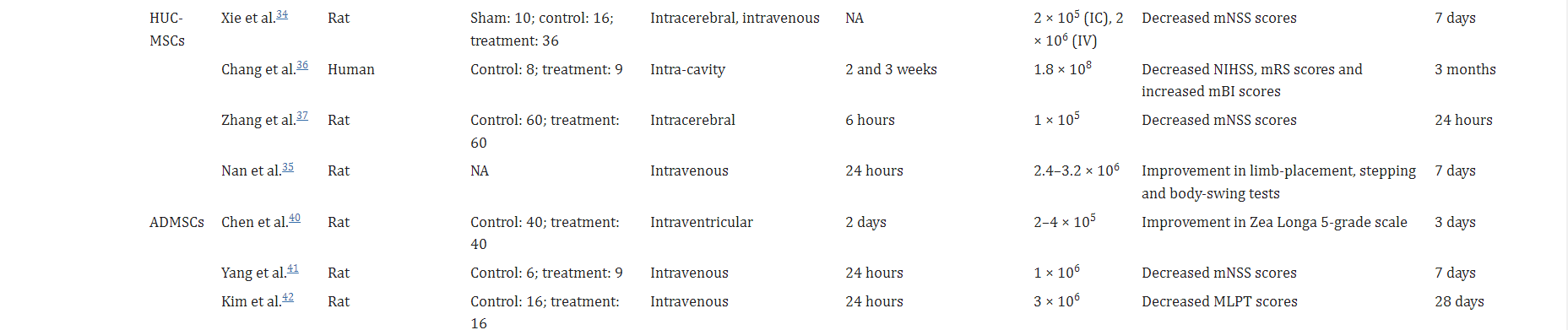 事實(shí)上,不同的細胞類(lèi)型和不同的遞送途徑會(huì )影響SCs到達目標和工作的方式,這將導致不同的結論,因此這些研究沒(méi)有可比性。需要更具體的實(shí)驗,重點(diǎn)關(guān)注ICH的SC交付時(shí)間窗口。