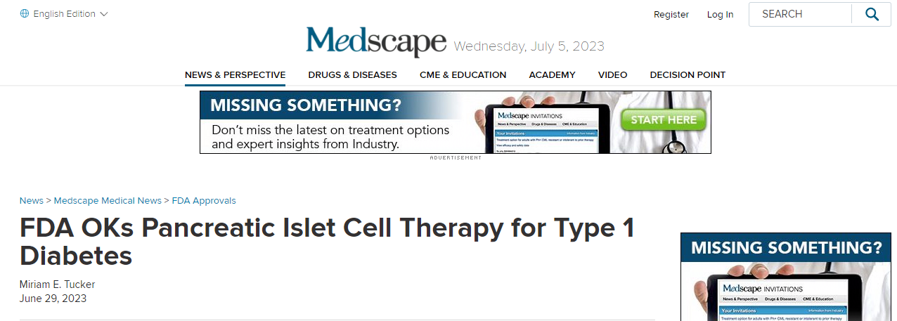 近日,FDA批準Lantidra,首個(gè)治療1型糖尿病的細胞療法。