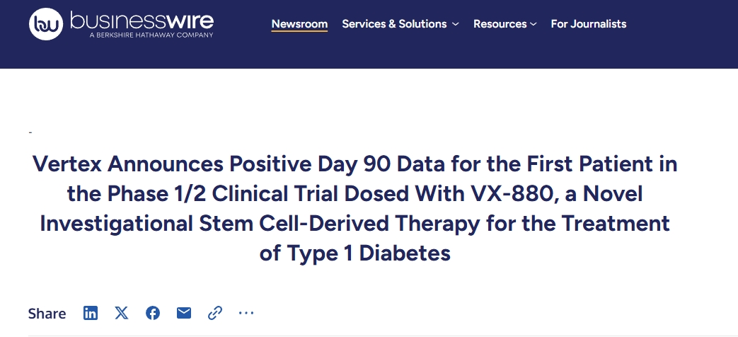 突破性干細胞療法Zimislecel:83%重癥糖尿病患者停用胰島素超一年