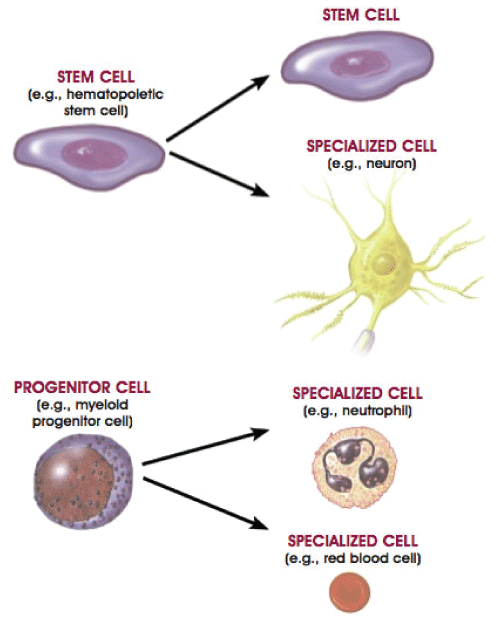 祖細胞與干細胞非常相似。它們是生物細胞,并且像干細胞一樣,它們也具有分化成特定類(lèi)型細胞的能力。然而,它們已經(jīng)比干細胞更具特異性,只能被推動(dòng)分化成它的“目標”細胞。然而,干細胞具有分化成許多不同類(lèi)型細胞的能力,如圖1所示。表 1 詳細突出顯示了干細胞和祖細胞之間的比較。