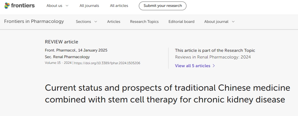 參考資料:Qian T, He Y, Han C, Yan R and He W (2025) Current status and prospects of traditional Chinese medicine combined with stem cell therapy for chronic kidney disease.?Front. Pharmacol.?15:1505206. doi: 10.3389/fphar.2024.1505206
