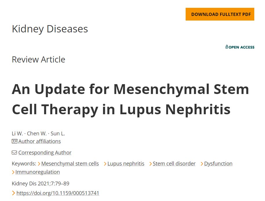 因此,仍然迫切需要新的療法。間充質(zhì)干細胞 (MSCs) 對免疫反應具有有效的免疫抑制調節作用,靜脈內移植間充質(zhì)干細胞可改善疾病癥狀,并已成為狼瘡腎炎的潛在有益療法。南京大學(xué)醫學(xué)院附屬鼓樓醫院風(fēng)濕免疫科的目的是討論間充質(zhì)干細胞在狼瘡腎炎動(dòng)物模型和患者治療中的應用。