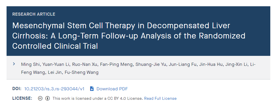 [9]Mesenchymal Stem Cell Therapy in Decompensated Liver Cirrhosis: A Long-Term Follow-up Analysis of the Randomized Controlled Clinical Trial,https://www.researchsquare.com/article/rs-293044/v1