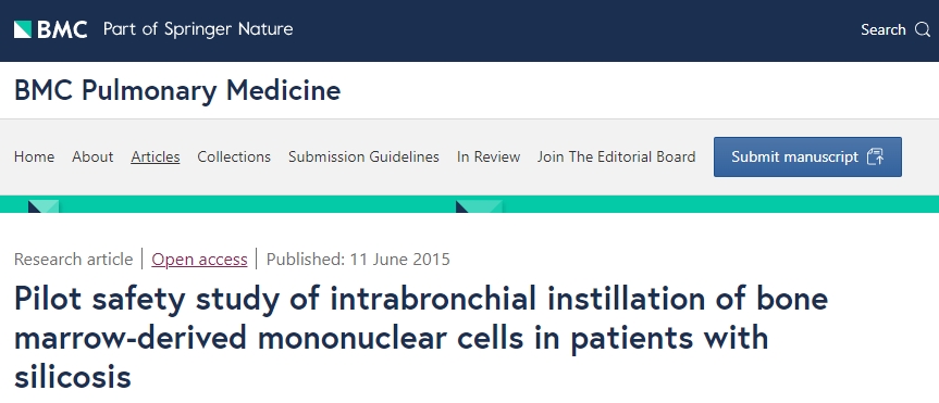 2015年,在一項評估硅肺患者氣管內灌注骨髓源性細胞療效的初步研究中,硅肺是一種由接觸二氧化硅引起的纖維化肺部疾病,對五名接受細胞治療的患者進(jìn)行了為期一年的隨訪(fǎng)。沒(méi)有觀(guān)察到嚴重的不良反應,一些跡象表明肺灌注有所改善。作者建議可以在更大規模的試驗中進(jìn)一步研究這種方法。