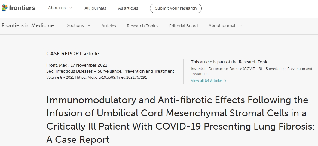 2021年,一份病例報告描述了一名接受機械通氣的患有COVID-19和PF的重癥患者在接受兩劑臍帶來(lái)源的MSC后病情有所改善。