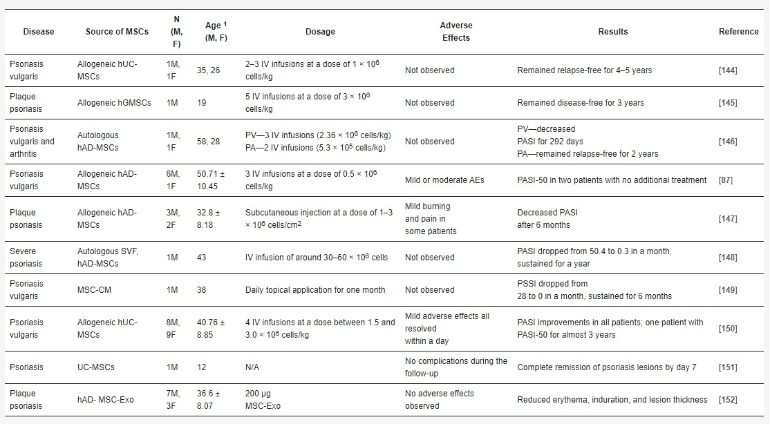 本報告證明了使用S-MSCs治療銀屑病的安全性和有效性,因此可以作為一種克服細胞療法局限性的替代方法。