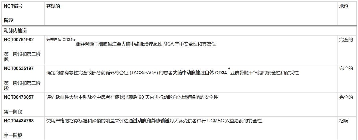 動(dòng)脈內輸送干細胞治療中風(fēng)的臨床試驗