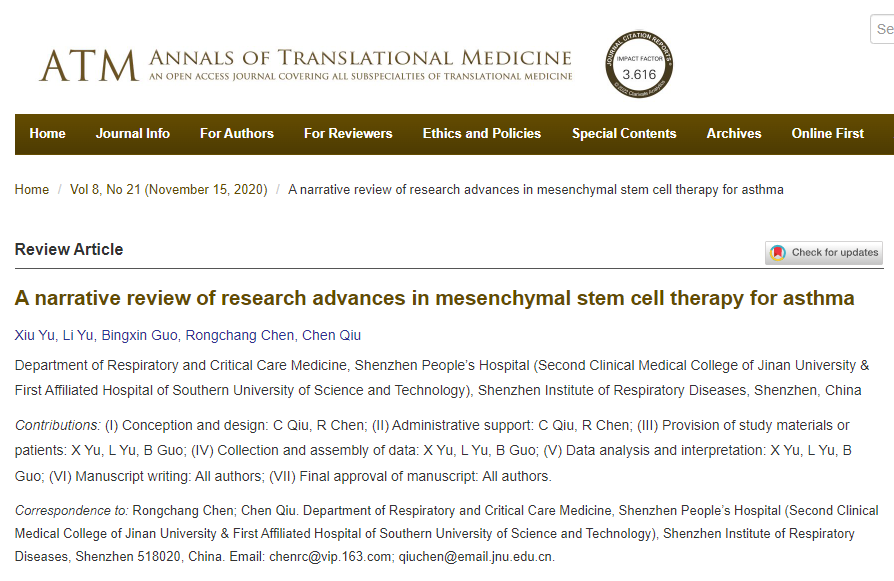 間充質(zhì)干細胞 (MSC) 的特點(diǎn)是具有多向分化的潛力,并且可以發(fā)揮免疫調節和抗炎作用。近年來(lái),其在治療哮喘方面的作用日益得到認可。在這篇綜述文章中,深圳市人民醫院試圖總結間充質(zhì)干細胞對幾種類(lèi)型哮喘的治療作用的最新進(jìn)展,并解釋了間充質(zhì)干細胞治療哮喘病的相關(guān)機制。
