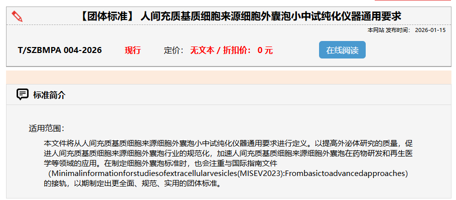 中國獸藥協(xié)會(huì )發(fā)布《貓用間充質(zhì)干細胞外泌體制備技術(shù)規范》等團體標準;深圳市生物醫藥促進(jìn)會(huì )連續發(fā)布《人間充質(zhì)基質(zhì)細胞來(lái)源細胞外囊泡凍干粉質(zhì)量要求》及《小中試純化儀器通用要求》等三項團體標準,對外泌體制備、純化及質(zhì)量控制各環(huán)節進(jìn)行嚴格規范。