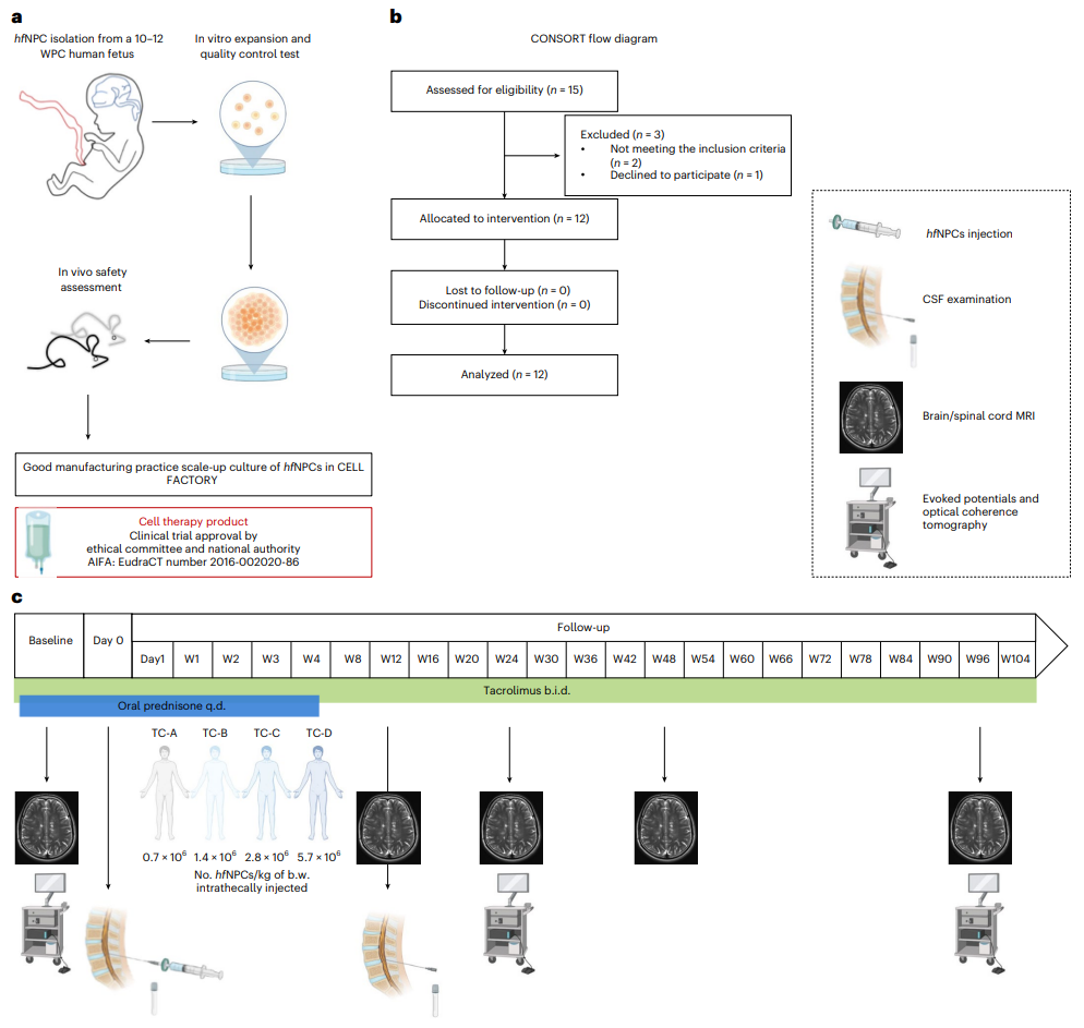 2023年1月9日,意大利IRCCS San Raffaele科學(xué)研究所等機構的研究人員在國際頂尖醫學(xué)期刊Nature Medicine 上發(fā)表了題為:Neural stem cell transplantation in patients with progressive multiple sclerosis: an open-label, phase 1 study 的研究論文。