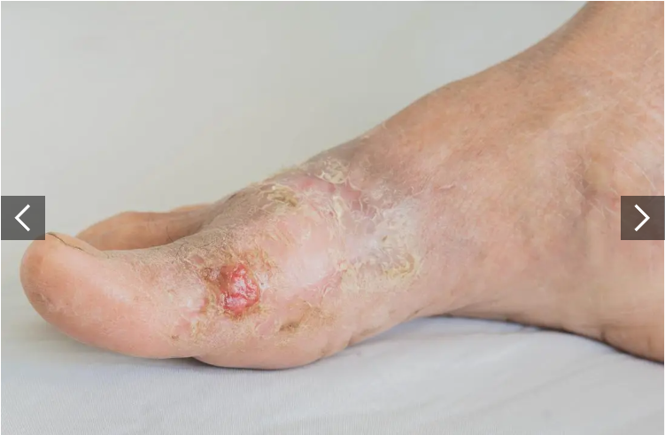 例如,腳上的水泡可能會(huì )潰爛,因為患者在早期感覺(jué)不到疼痛。隨著(zhù)感染的發(fā)展,可能會(huì )形成壞疽。