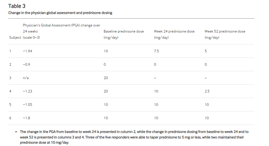 表3:醫生總體評估和潑尼松劑量的變化