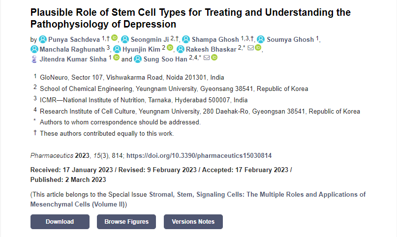 近期,韓國嶺南大學(xué)化學(xué)工程學(xué)院在國際期刊《Pharmaceutics》中發(fā)表了一篇關(guān)于多種干細胞類(lèi)型在治療重度抑郁癥方面的作用機制的綜述。