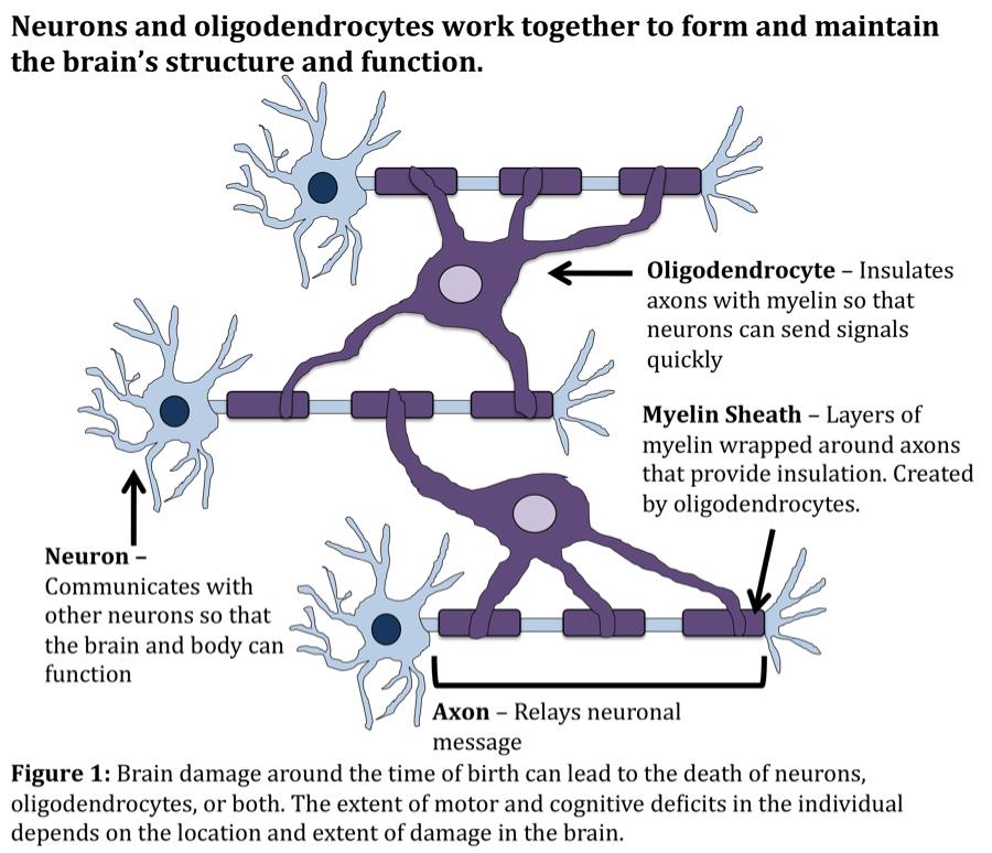 當大腦在敏感的圍產(chǎn)期發(fā)生損傷時(shí),常駐的腦細胞就無(wú)法促進(jìn)大腦的正常生長(cháng)和發(fā)育。神經(jīng)元少突膠質(zhì)細胞死亡和/或無(wú)法成熟,連接各個(gè)大腦區域的白質(zhì)束受損。重要的是,連接大腦運動(dòng)區和脊髓并幫助控制運動(dòng)的皮質(zhì)脊髓束(CST)經(jīng)常受到損傷。如果沒(méi)有功能性CST連接,就會(huì )出現運動(dòng)缺陷。