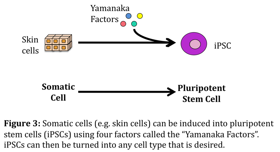 2008年,山中伸彌 教授因發(fā)現四種生物因子而獲得諾貝爾獎,這些生物因子可用于將任何體細胞(完全分化)細胞轉變?yōu)槎嗄芨杉毎?。這些新的類(lèi)似ESC的細胞被稱(chēng)為誘導多能干細胞(iPSC)。這一發(fā)現引起了科學(xué)界的極大關(guān)注。能夠產(chǎn)生多能干細胞基本上消除了獲得多能干細胞對胚胎組織的需求。通常,如果患者要接受干細胞移植,則需要這些細胞的供體同種異體移植。然而,iPSC 可以源自患者自身的體細胞。