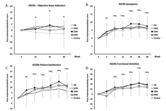 2021年4月,《干細胞轉化醫學(xué)》期刊報道。12名45-65歲的中/重度膝骨關(guān)節炎患者接受了不同劑量的間充質(zhì)干細胞治療。3組注射劑量分別為1 X106、1X107、5X107。
