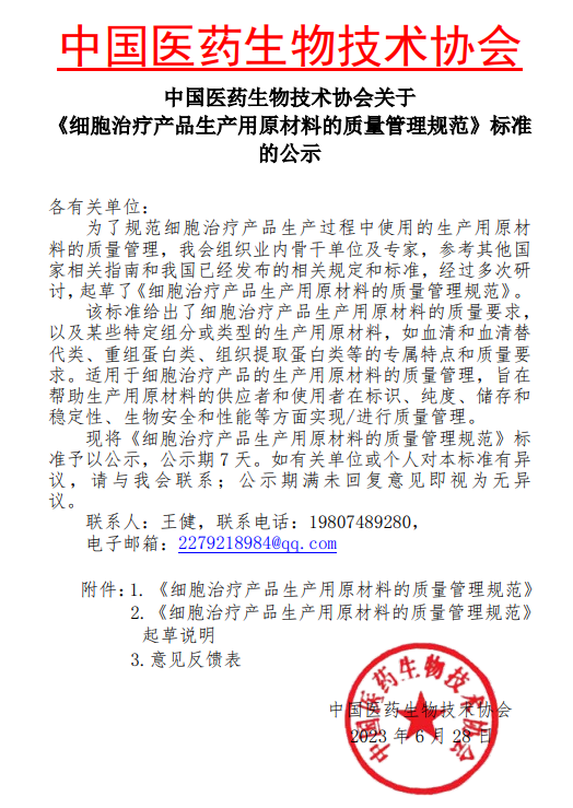 這份規范旨在提高生產(chǎn)用原材料的質(zhì)量,以確保細胞治療產(chǎn)品的安全和有效性。