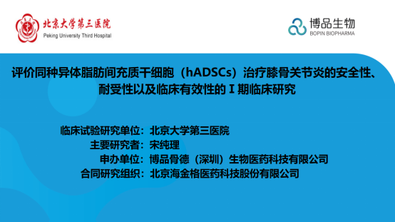經(jīng)國家食品藥品監督管理局批準(批準通知書(shū):2022LP01030),由博品骨德(深圳)生物醫藥科技有限公司申辦,北京大學(xué)第三醫院骨科牽頭的“評價(jià)同種異體脂肪間充質(zhì)干細胞治療膝骨關(guān)節炎的安全性、耐受性以及臨床有效性的Ⅰ期臨床試驗”項目啟動(dòng)會(huì ),于2023年2月15日在北京大學(xué)第三醫院順利召開(kāi)。