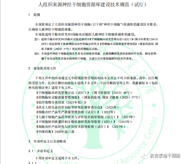 2023年12月01日,國家干細胞轉化資源庫正式發(fā)布《人組織來(lái)源神經(jīng)干細胞資源庫建設技術(shù)規范(試行)》(以下簡(jiǎn)稱(chēng)《規范》),該《規范》系針對神經(jīng)干細胞資源庫的建設。